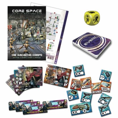 Le Corps Galactique est une extension de Core Space qui introduit le Corps Galactique discipliné et les Gardiens de la sécurité locaux – de nouveaux types de PNJ. Travaillez avec et contre eux dans une série de nouvelles missions passionnantes, puis ajoutez-les à vos jeux habituels avec les nouvelles cartes d’événement et les nouveaux dés de sécurité. Ils sont là pour la Purge, mais ne les gênez pas !
