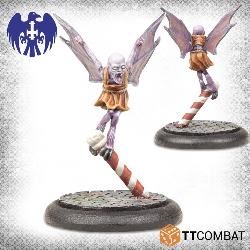 Cette boîte contient un gang de Strigoi complet, un venu du ciel ! Une Stryha Crone dirige le groupe, volant dans la ville et se fondant dans son environnement. Deux Harpies sont les plus petits du groupe, des enfants qui sont devenus sauvages après avoir reçu le Blood Kiss. Un Strige est légèrement plus sain d’esprit, mais encore plus mortel. Enfin, un monstrueux Strzyga montre ce qui se passe lorsque le cannibalisme va trop loin, déverrouillant la bête à l’intérieur de chaque Strigoi.