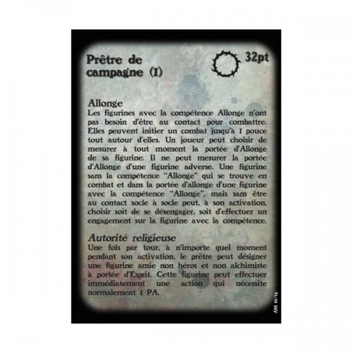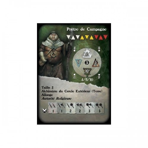 Fournie avec un socle rond de 1 », sa carte de profil et sa carte de formules pour le jeu Alkemy
