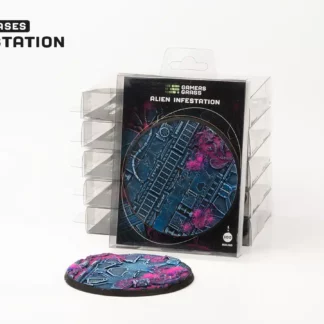 Les bases prêtes au combat de 100 mm de large en thermoplastique, dans un thème Alien Infestation, sont parfaites pour simuler les dangers d’un vaisseau spatial infesté, où la survie n’est pas garantie.
