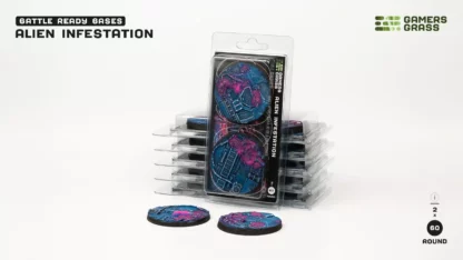 Ce blister contient 2 bases prêtes au combat de 60 mm de large, dans un thème Alien Infestation. Les fentes inférieures sont compatibles avec des aimants d’un diamètre allant jusqu’à 6 mm et d’une épaisseur de 1 mm. Aimants non inclus. Toutes les bases prêtes au combat sont vendues déjà peintes et finies à la main.