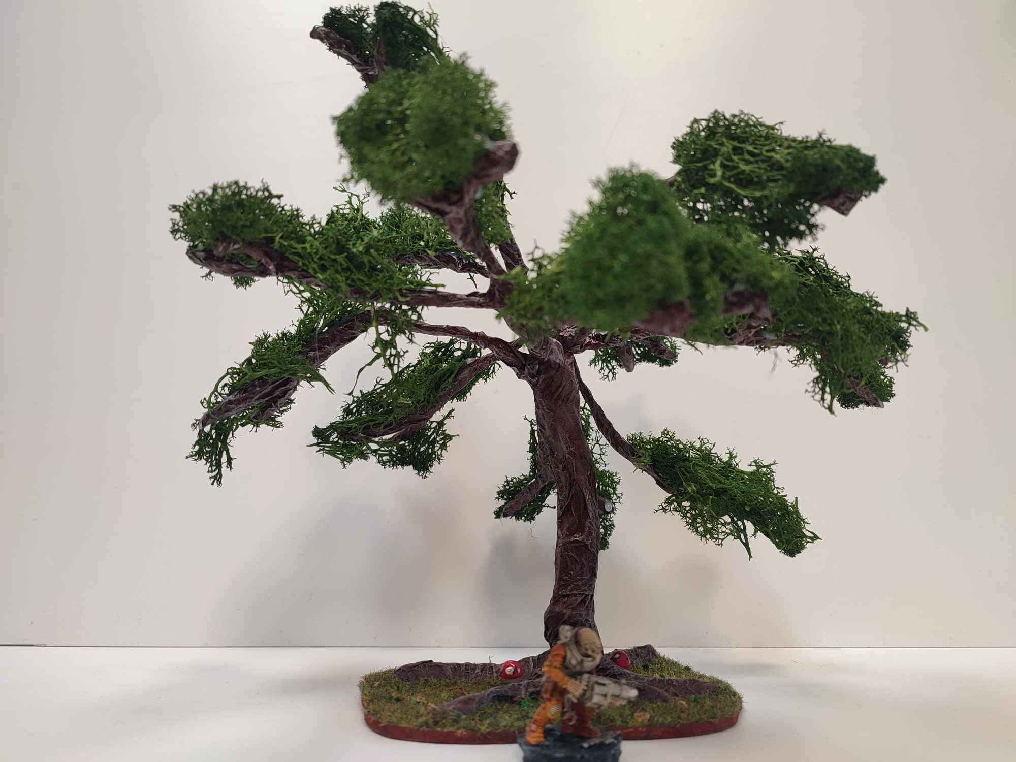 Arbre de fabrication artisanale, peint et texturé, prêt à jouer.