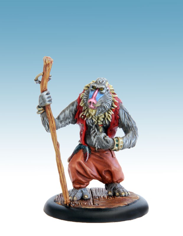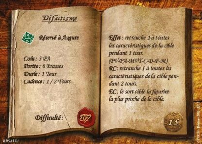 Figurine résine au 54mm, son socle texturé de 40mm, sa carte de profil et ses 2 sorts. Sculpture et Peinture : E. Pontié.