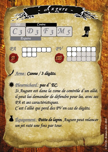 Augure est passé maître dans l’art de jouer avec le destin, ses compagnons le protègent farouchement, tant ses bons auspices sont appréciés.