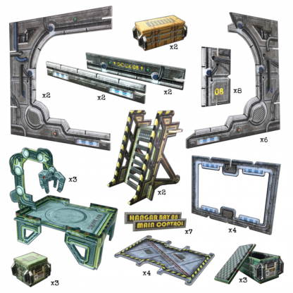 Ce pack contient tout ce dont vous avez besoin pour améliorer votre table de jeu de science-fiction avec un hangar d’arrivée de vaisseau spatial ou une baie de chargement. Il peut être assemblé à la hauteur et à la largeur de votre choix et comprend des machines de chargement et des caisses de chargement.