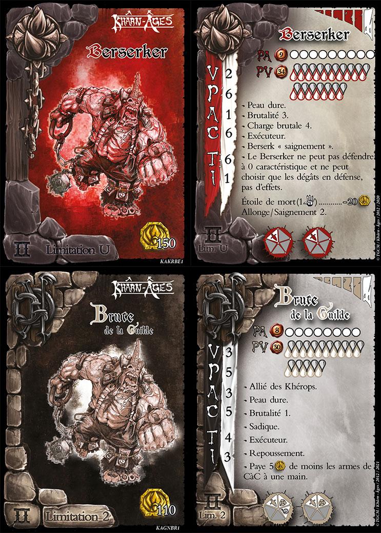 Le blister contient 2 bras droits pour choisir l’arme et deux profils (Brute de la Guilde pour la Guile Noire et Berserker pour les Khérops).
