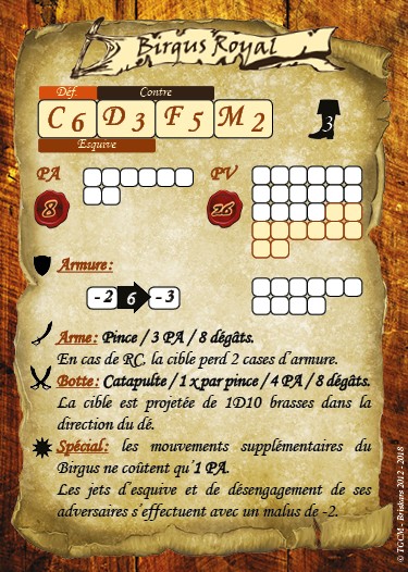 Le Birgus Royal est une énorme catapulte, qui peut se débarrasser de ses adversaires en les envoyant s’écraser jusqu’à 10 brasses de lui…Un atout supplémentaire chez les Bannis qui offre de vraies nouvelles possibilités de jeu!