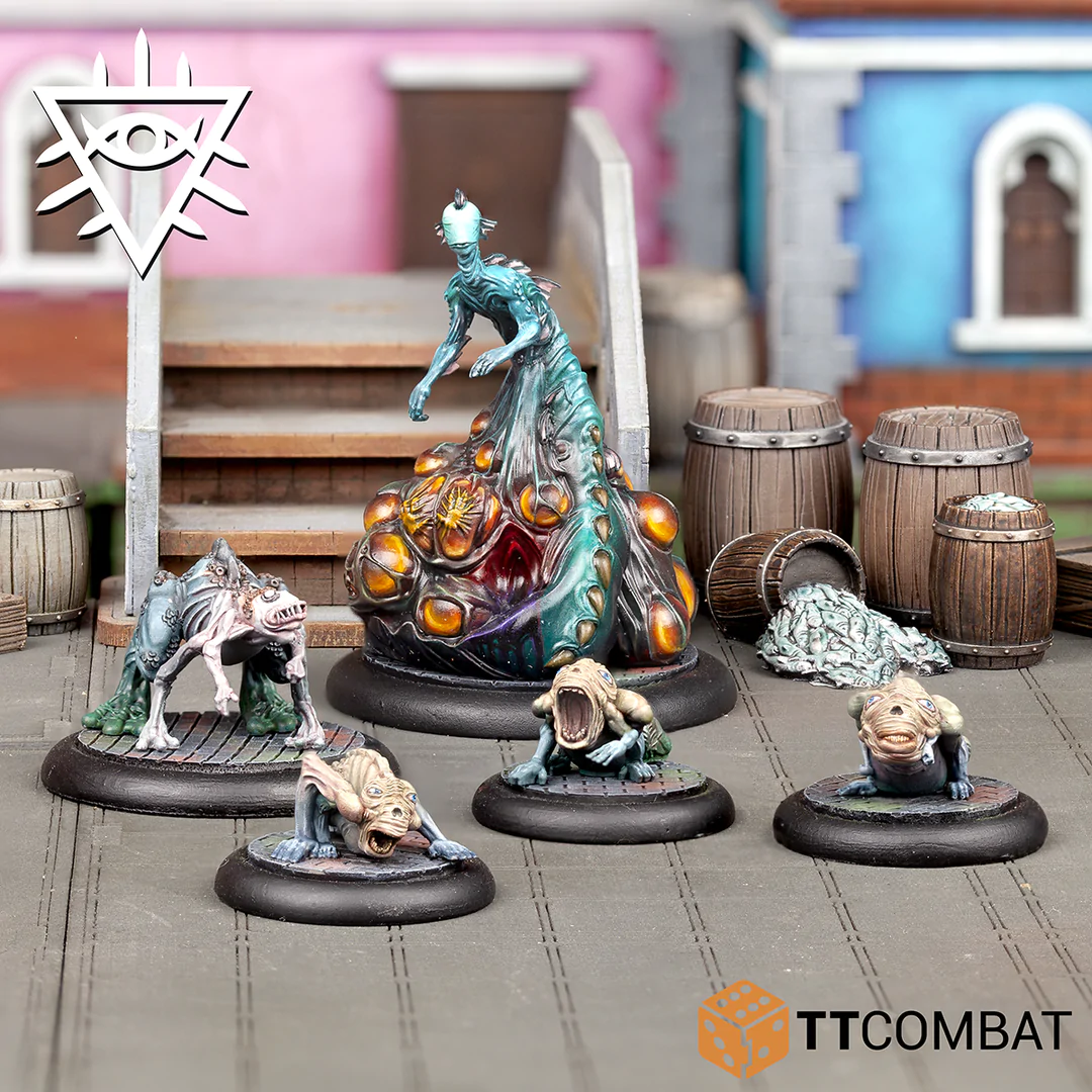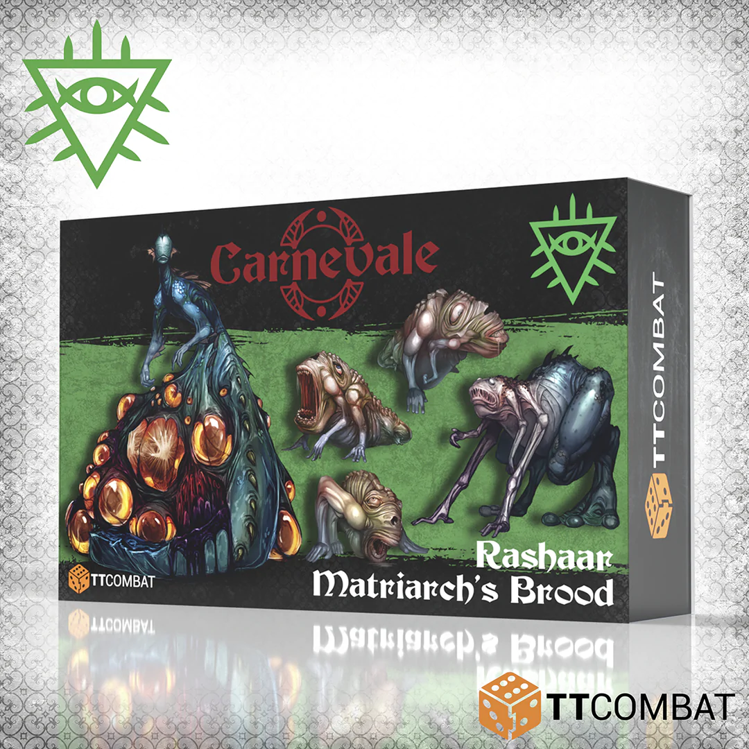 Cette boîte fournit un leadership dédié aux gangs Feral Rashaar, bien qu’elle puisse être utilisée pour diriger d’autres gangs Rashaar. Une Matriarche Partuul est la mère courroucée des Crybabies et peut les engendrer à volonté. Le Bounding Telchine est fragile mais peut sauter assez loin pour franchir les obstacles et les personnages en un seul saut. Le trio de Crybabies peut être ajouté à votre gang, ou être retenu et engendré par la Partuul Matriarch. Utilisez-les pour distraire les gangs ennemis, ou donnez-leur à manger à votre Feral Rashaar et encensez leur matriarche.