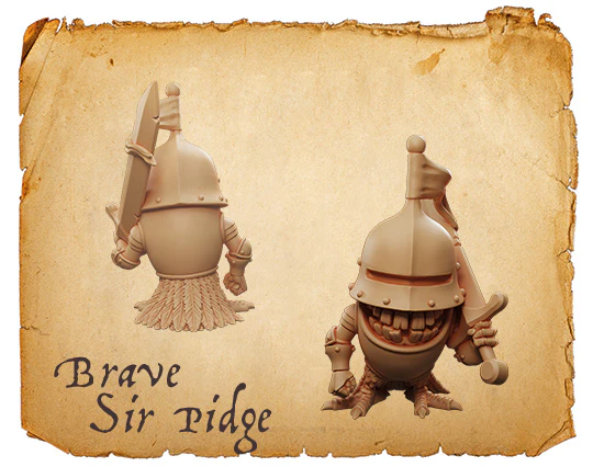 – 1 x figurine Brave Sir Pidge avec Stat Card et socle.