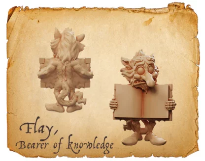 – 1 x figurine Flay, porteur de savoir, avec carte de statut et socle.
