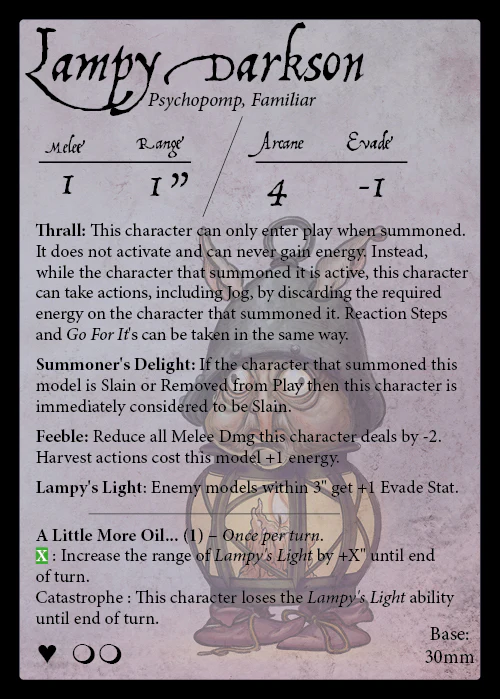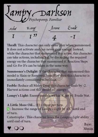 – 1 x figurine Lampy Darkson avec Stat Card et socle.