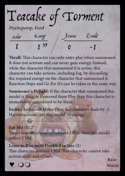 – 1 x Figurine Teacake of Torment avec Stat Card et socle.