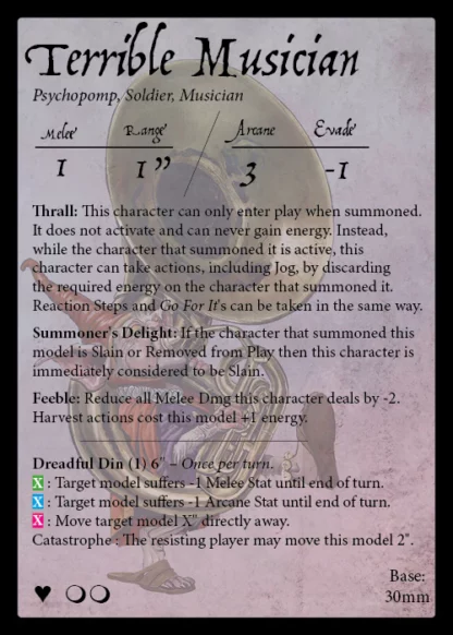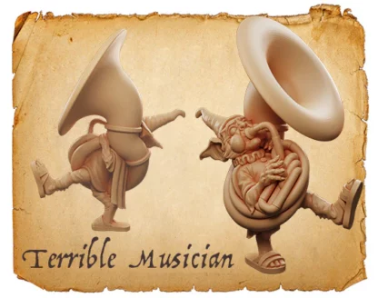 – 1 x La figurine du Terrible Musicien avec Stat Card et socle.
