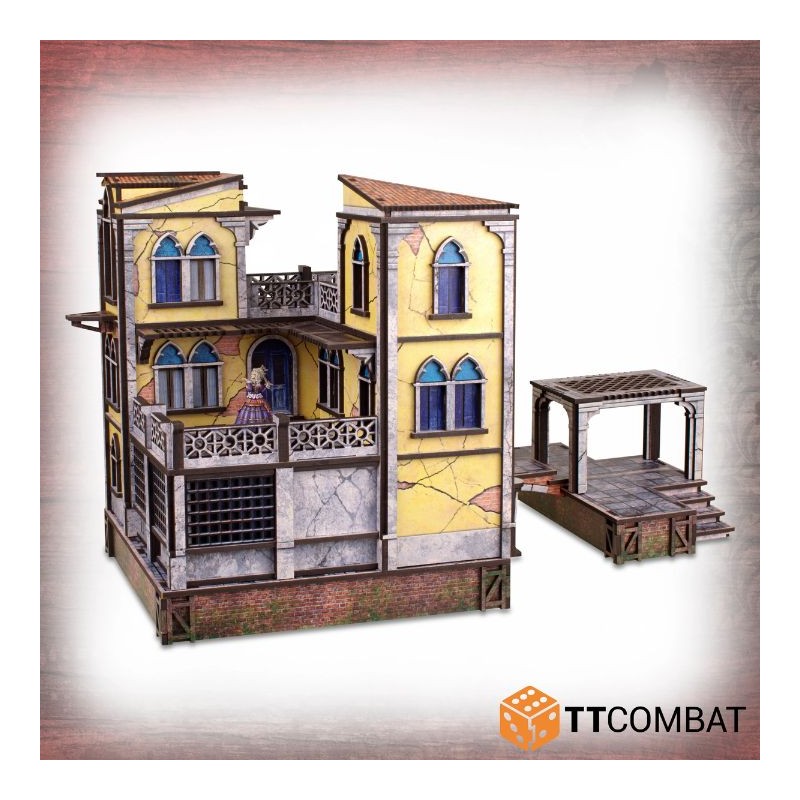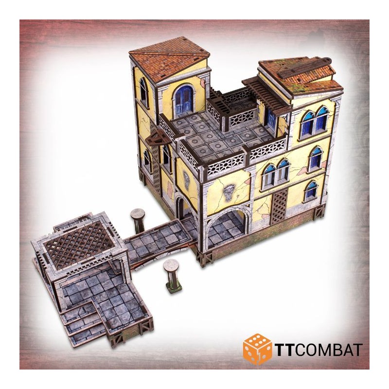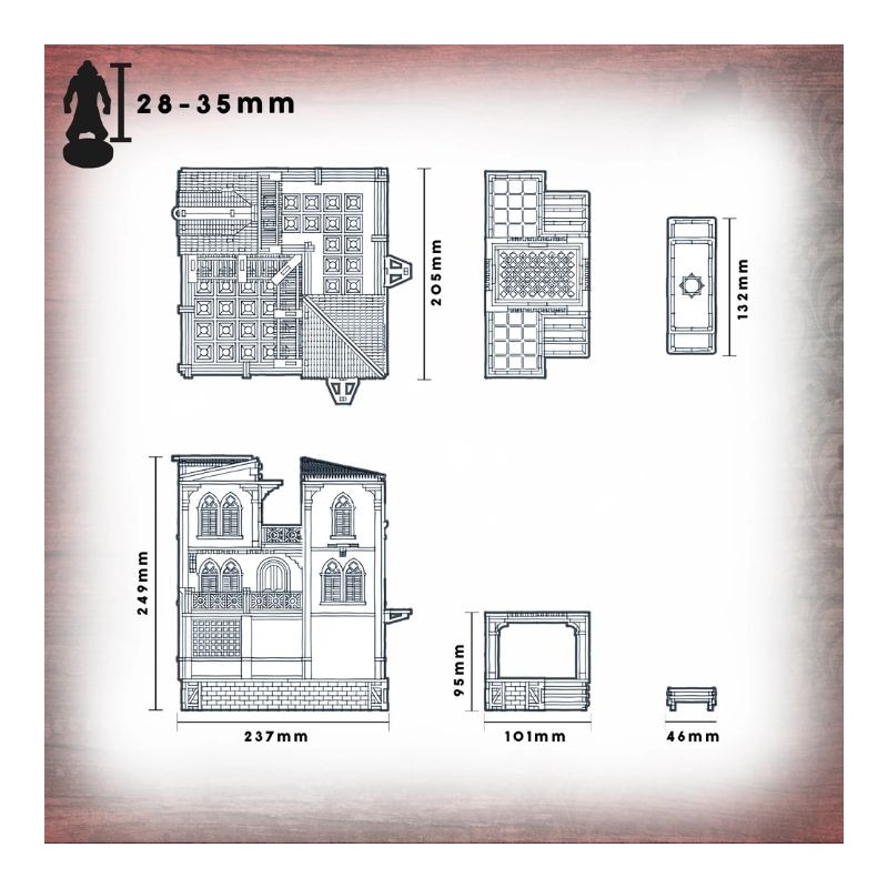 Le kit Casa Asimmetrica est fabriqué à partir de MDF pré-coloré de 3 mm d’épaisseur à l’aide d’une encre UV résistante. Bien qu’il ait été conçu pour Carnevale, il s’adapte parfaitement à d’autres jeux et figurines de 28 à 32 mm.