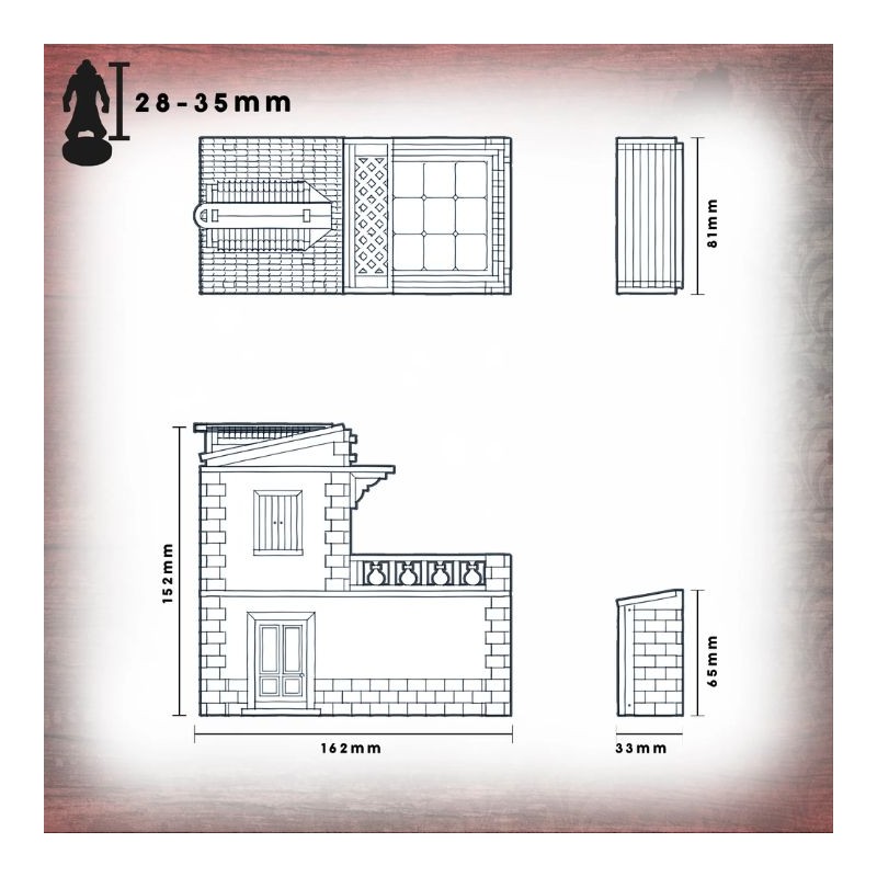 Le kit Casa Sofia est fabriqué à partir de MDF pré-coloré de 3 mm d’épaisseur à l’aide d’une encre UV résistante. Il s’agit d’un excellent kit de décors à utiliser dans les jeux d’escarmouche de science-fiction et qui fonctionnera parfaitement avec les jeux et les figurines de 28 à 32 mm.