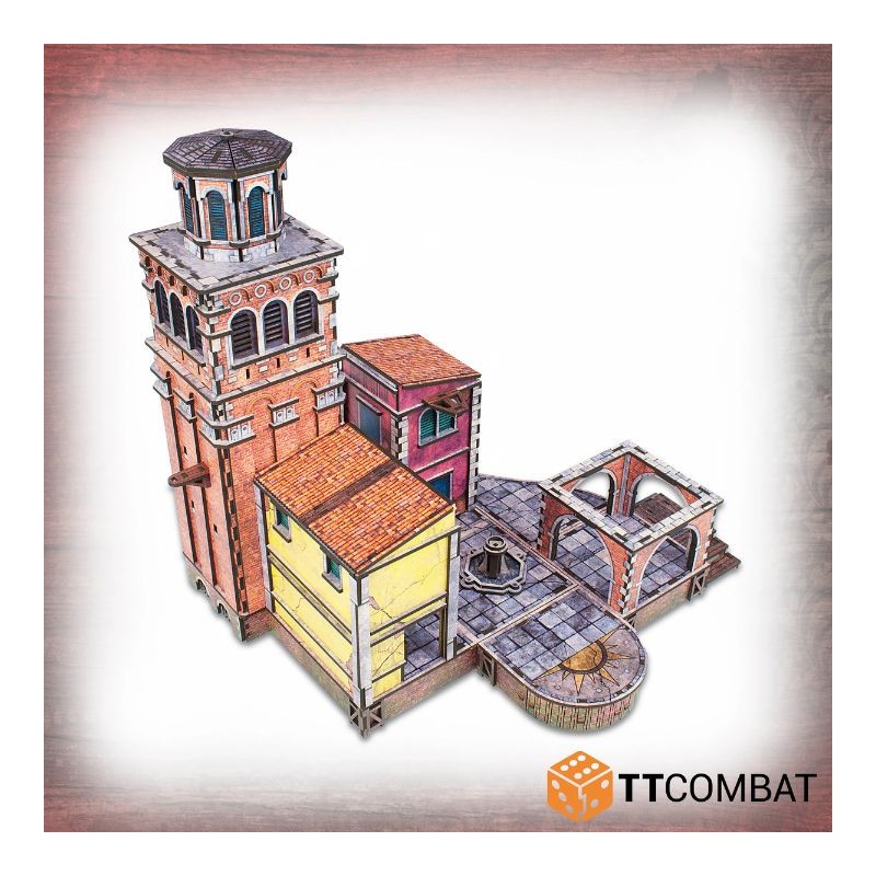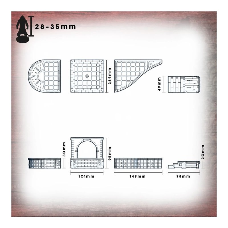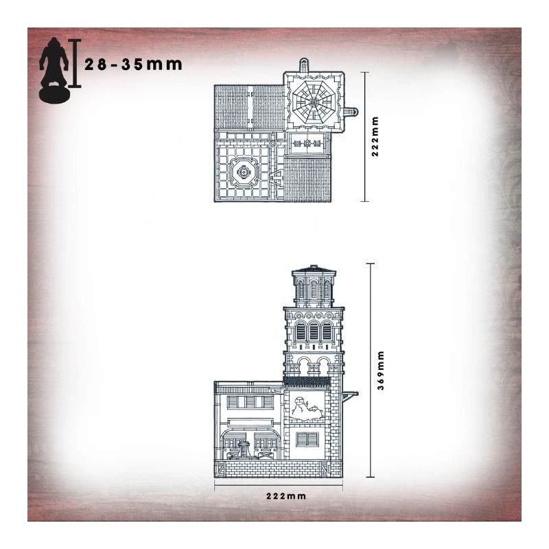 Le kit Market Tower est fabriqué à partir de MDF pré-coloré de 3 mm à l’aide d’une encre UV résistante. C’est un excellent kit de décor à utiliser dans les jeux d’escarmouche de science-fiction et il fonctionnera parfaitement avec les jeux et les figurines de 28 à 32 mm.