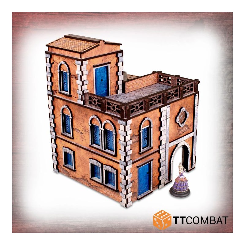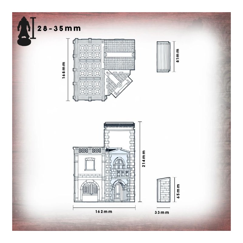 Le kit Palazzo Renata est fabriqué à partir de MDF pré-coloré de 3 mm d’épaisseur à l’aide d’une encre UV résistante. Il s’agit d’un excellent kit de décor à utiliser dans les jeux d’escarmouche de science-fiction et qui fonctionnera parfaitement avec les jeux et les figurines de 28 à 32 mm.