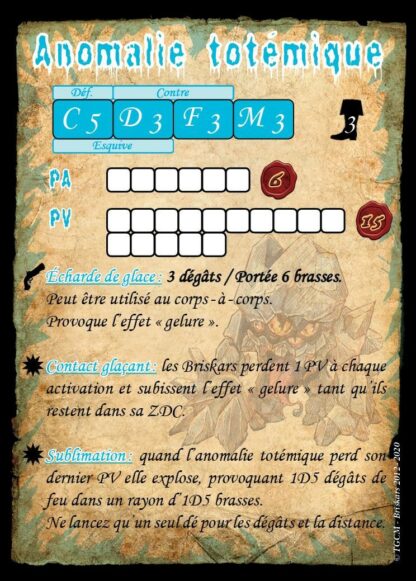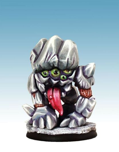 Figurine résine au 54mm, son socle texturé de 40mm, sa carte de profil et son sort d’invocation. Sculpture: E. Pontié. Peinture : G. Jouy Boulard.
