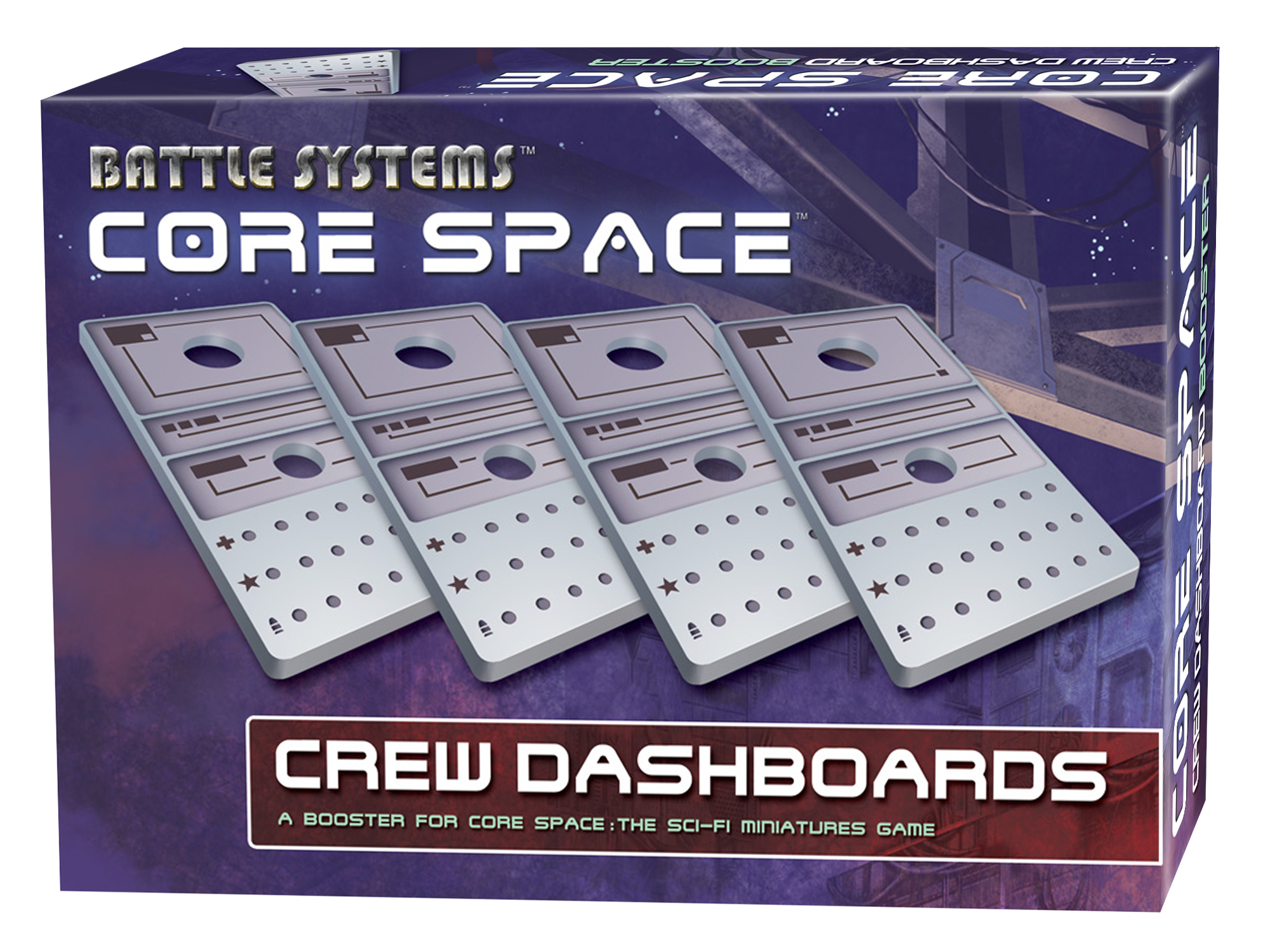 Ce booster pour Core Space contient suffisamment de tableaux de bord et de chevilles en plastique (avec des pièces de rechange) pour un équipage Trader complet, tout comme ceux du kit de démarrage. Ceux-ci sont essentiels pour les jeux multijoueurs – vous aurez besoin d’un ensemble par équipage en plus des deux ensembles de la boîte de démarrage.