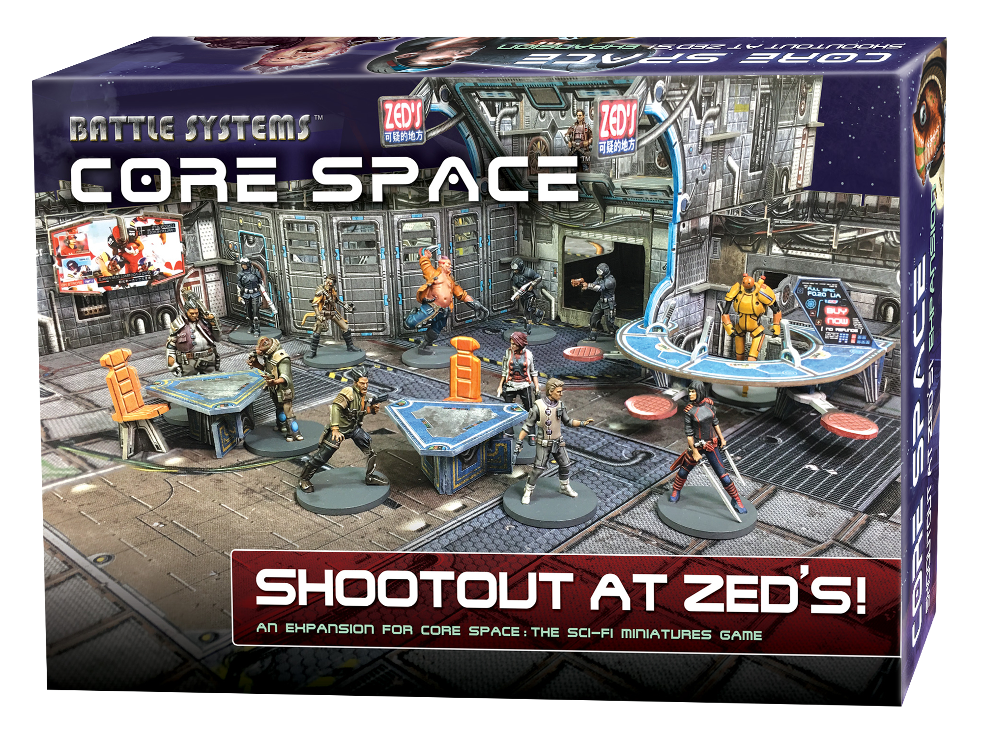 Shootout at Zed’s est une extension pour Core Space qui présente l’ignoble Zed et sa bande de criminels, un nouveau type de PNJ, ainsi que de nouveaux civils. Apprenez à les aimer ou à les détester dans une série de nouvelles missions passionnantes, puis ajoutez-les à vos parties habituelles avec les nouvelles cartes d’événement. Ils sont également une équipe de commerçants entièrement jouable !