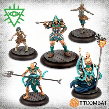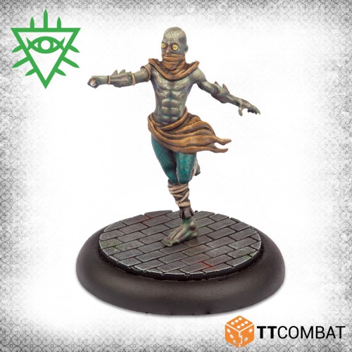 Pour tous les joueurs de Rashaar qui souhaitent améliorer leur jeu au sol, les Dagon Fanatics vous aideront ! Un démagogue pousse votre gang vers un but plus élevé, suivi d’un exécuteur loyal (et coriace). Le Handler est l’ami d’un joueur Rashaar pour s’occuper d’autres monstres, tandis que les deux Urchins poignarderont n’importe quel adversaire dans le dos s’ils ont une demi-chance.