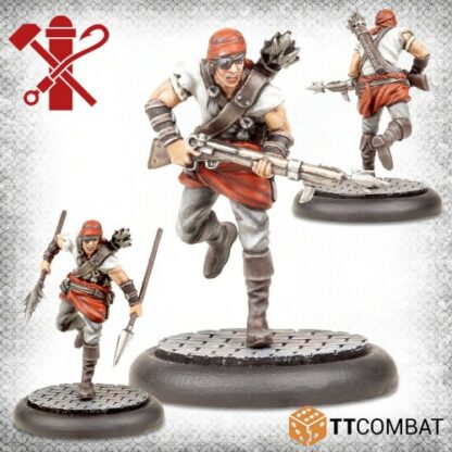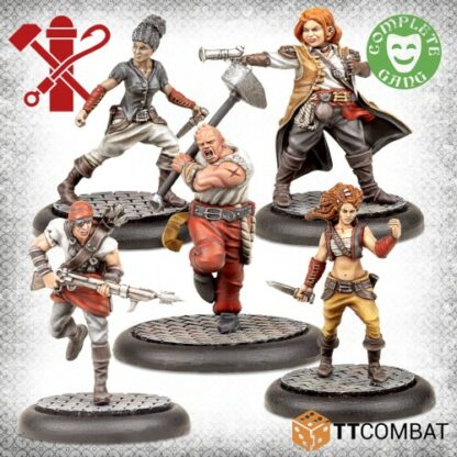Les Dockworkers sont la réponse de la Guilde au combat sur l’eau. Ils sont durs, défensifs et pas trop mal non plus dans les canaux. Ce gang complet est dirigé par un capitaine de port qui protégera son équipage à tout prix, tandis que le pêcheur chassera de grandes créatures dans l’eau. Un charpentier fournit une puissance de frappe importante, écrasant les gens comme il écrase des rivets sur ses bateaux. Enfin, deux Mariners apporteront aux joueurs de la Guilde le soutien dont ils ont tant besoin lorsqu’ils sont sur l’eau.