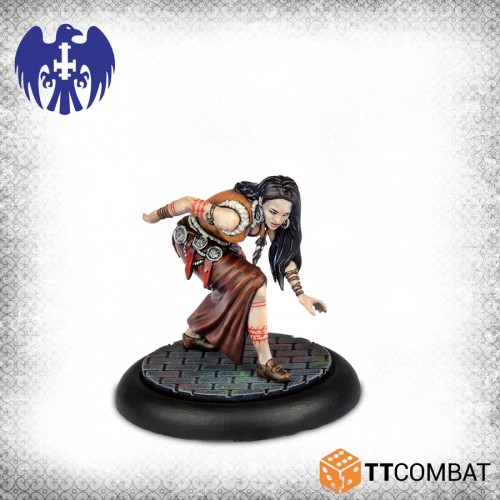 Cette boîte contient certains des personnages les plus puissants pour vos parties de Carnevale. Vlad Dracula est presque un gang composé d’un seul homme avec un commandement fantastique, des capacités offensives et défensives. Cérès, Cibelle et Miriam – les épouses de Dracula – sont de redoutables combattants et mages, et le prêtre Strigoi dans une création impie, parfaite pour arrêter la magie ennemie.
