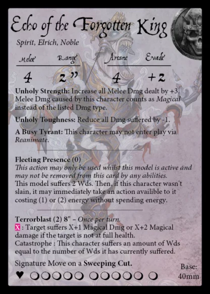 – 1 x Echo du Roi Oublié avec carte Stat et socle.