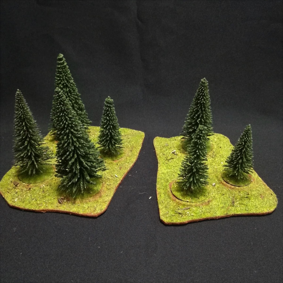 Les arbres sont sur socle individuel pour vous permettre d’enlever un ou des arbres pour y placer vos figurines lors de vos parties.