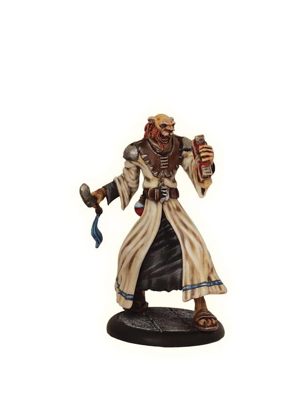 1 figurine en résine au 54mm, 1 socle de 40mm et 2 cartes de profil.