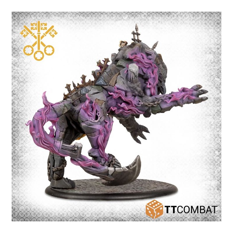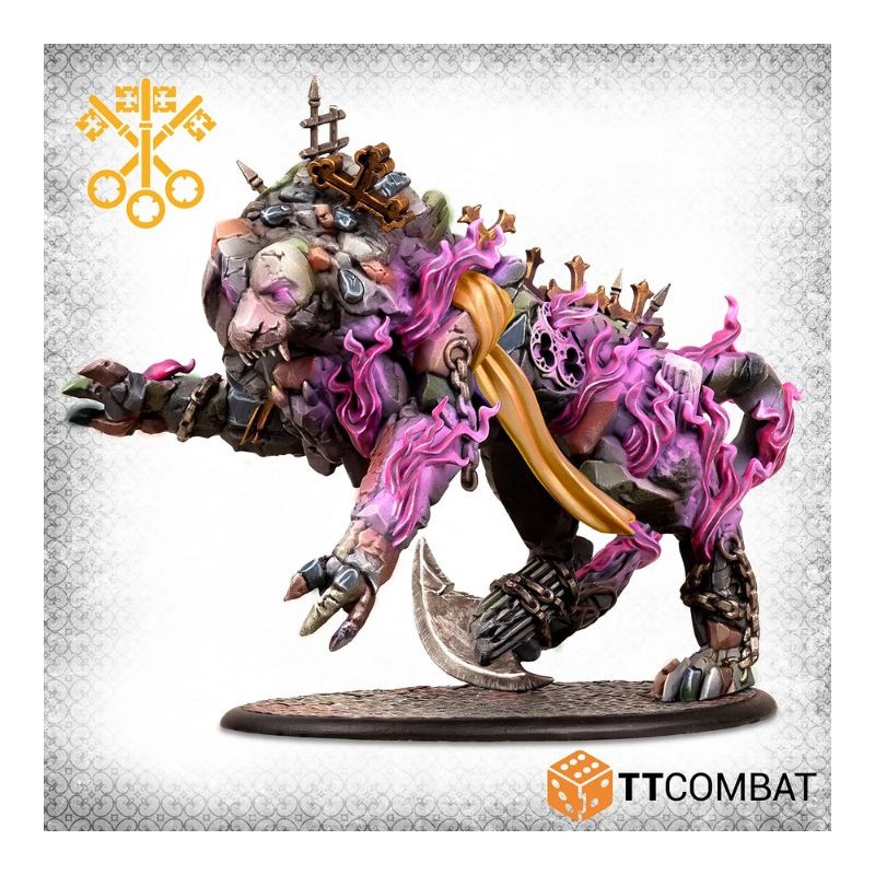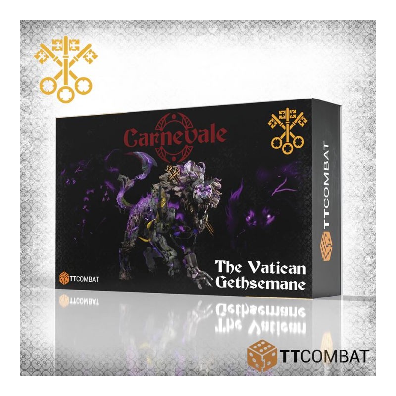 Cette boîte contient le légendaire colosse Gethsemane ! La plus grande créature jamais lâchée sur Venise, même les adeptes de la « vraie » foi évitent cette bête lorsqu’elle est lâchée sur le champ de bataille. Étonnamment féline, Gethsemane se faufile dans les combats avant de bondir sur sa proie et de la déchiqueter avec une extrême violence.