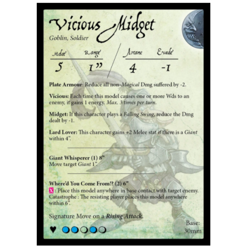 1 x Vicious Midget Miniature et Stat Card