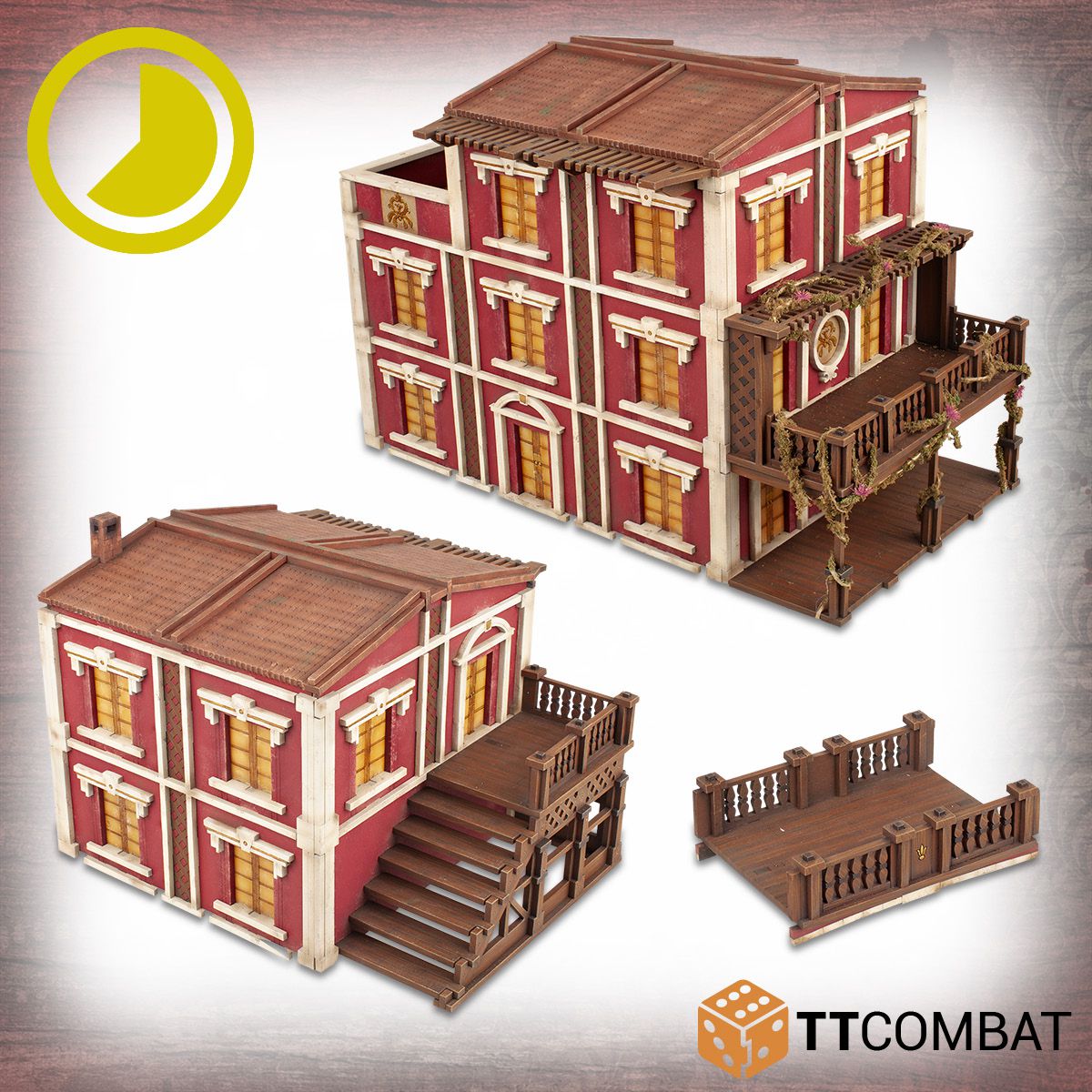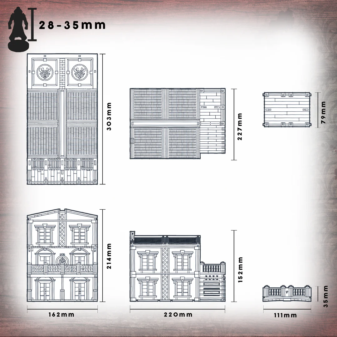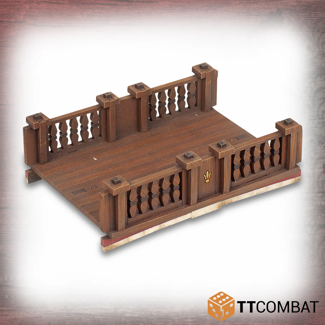 Cet ensemble comprend deux grands bâtiments et un pont en bois. Ce kit est compatible avec les bâtiments modulaires existants de la gamme. Le pont lui-même peut être utilisé entre les balcons des bâtiments ou les sections de la place du canal.