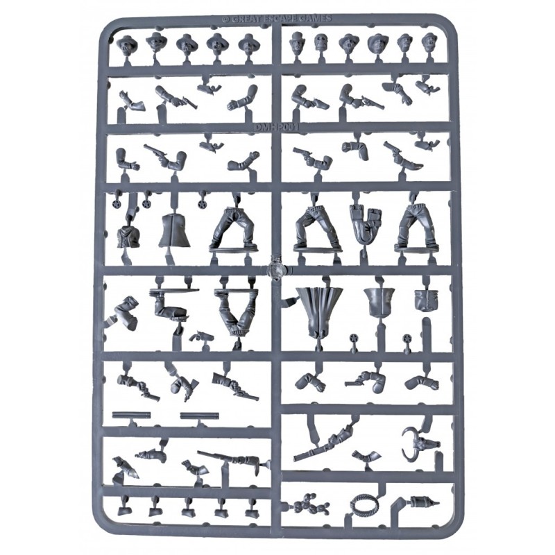 Contient 10 figurines en plastique en plusieurs parties qui peuvent être assemblées de plusieurs façons qu’une vermine à onze doigts ne peut en compter ! Toutes les armes dont vous aurez besoin pour armer votre dangereuse bande se trouvent sur la carotte, y compris des pistolets, un fusil à répétition, deux fusils de chasse et un fusil à pompe, ainsi qu’une foule d’autres détails pour rendre votre bande vraiment individuelle.