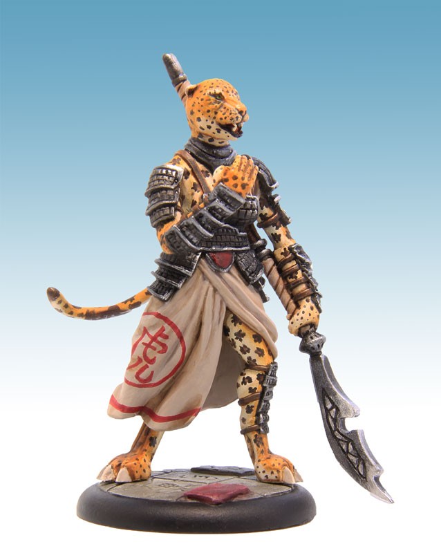 Figurine résine au 54mm, son socle texturé de 40mm, sa carte de profil et de stratégie. Sculpture et Peinture : E. Pontié.