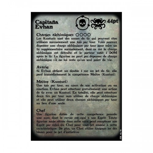 Fournie avec un socle en résine texturé et sa carte de profil pour le jeu Alkemy.