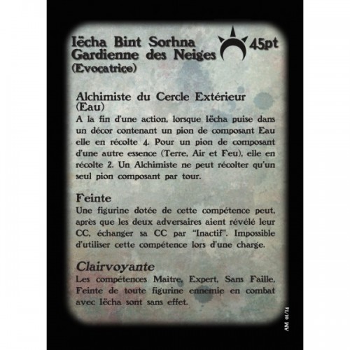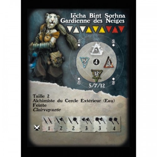 Fournie avec un socle en résine texturé rond de 1 » et sa carte de profil et sa carte de formules pour le jeu Alkemy