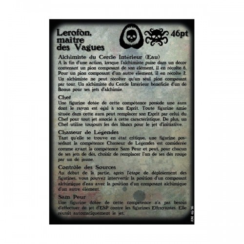 Fournie avec un socle en résine texturé et sa carte de profil pour le jeu Alkemy.
