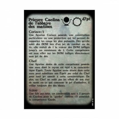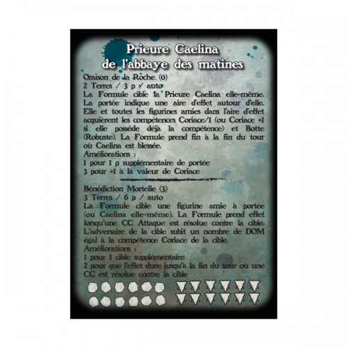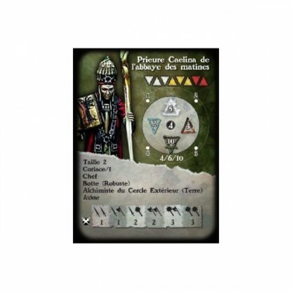 Fournie avec un socle en résine texturé rond de 1 », sa carte de profil et sa carte de formules pour le jeu Alkemy