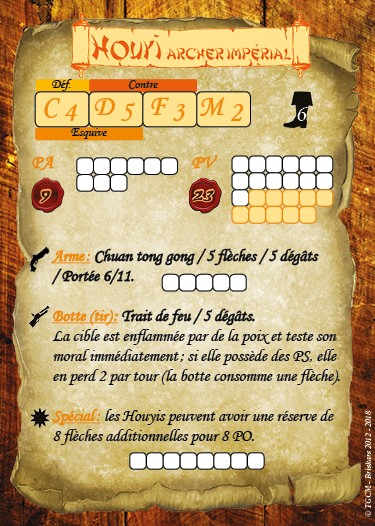 Les Houyis sont la première ligne de défense de l’Empire, capables de faire pleuvoir une pluie de flèches enflammées sur leurs ennemis.