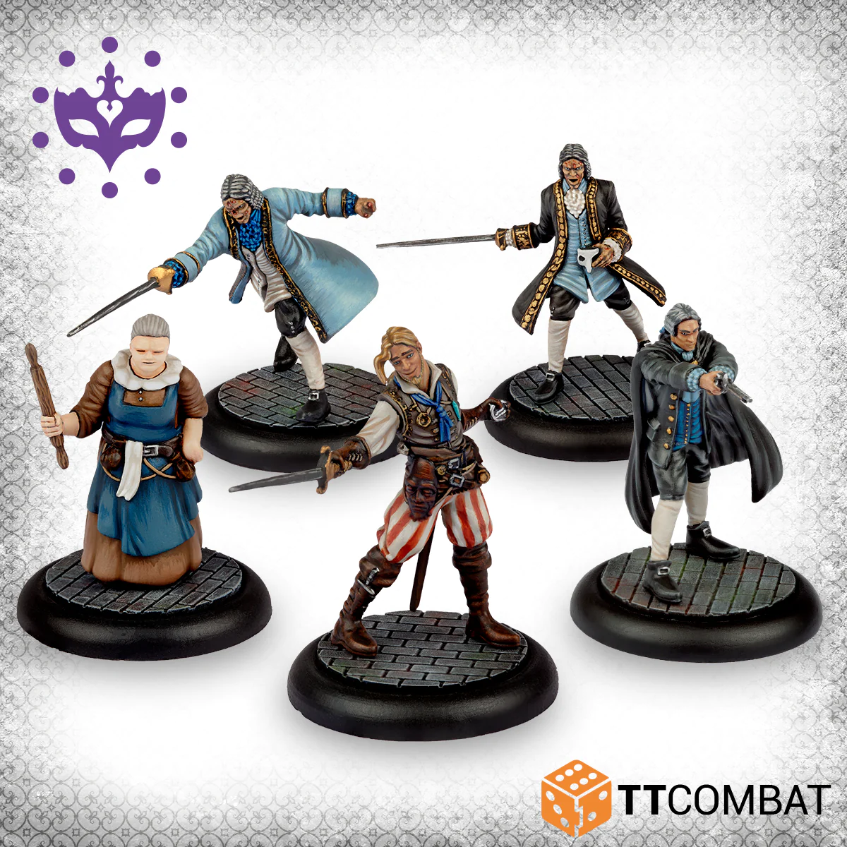 Cette boîte est une excellente extension pour tous les joueurs de Patriciens. Les deux membres du personnel de maison sont excellents pour protéger leur noble, tandis que les deux nobles syphilitiques fournissent des prouesses au combat égales à la plupart des choix de chef. Le véritable joyau de la boîte est l’adroit Adventuring Noble, qui – récemment revenu de lointaines jungles – apporte avec lui des talismans enchantés, faisant de lui l’un des seuls personnages patriciens capables de lancer des sorts magiques.