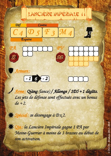 Cette synergie se traduit par un PA supplémentaire lorsqu’elles commencent leur activation à moins de 3 brasses d’un moine guerrier.