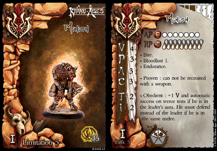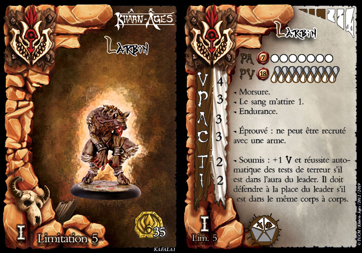 Les Larbins sont la masse de la faction des Fangs, dépourvus d’armes ils peuvent être recrutés jusqu’à 5 dans votre Fer de lance, permettant de noyer l’adversaire sous le nombre tout en n’ayant pas peur de sacrifier quelques pièces. Cette figurine est déclinée uniquement en Niveau 1.