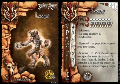 Les Larbins sont la masse de la faction des Fangs, dépourvus d’armes ils peuvent être recrutés jusqu’à 5 dans votre Fer de lance, permettant de noyer l’adversaire sous le nombre tout en n’ayant pas peur de sacrifier quelques pièces. Cette figurine est déclinée uniquement en Niveau 1.