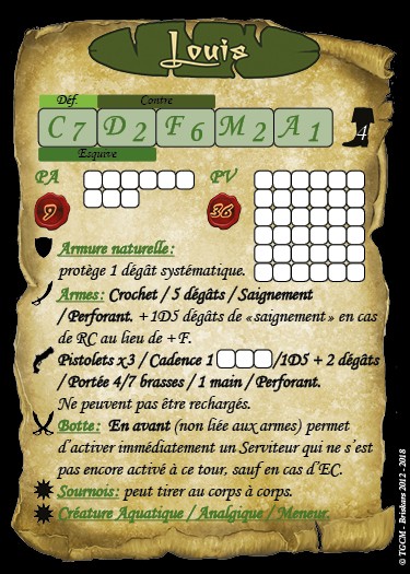 Louis est le digne fils de Gustave Sledgehammer, n’ayant pas voulu rester dans son ombre et à portée de claques, il est très tôt parti bourlinguer sur les 7 mers. Gharial, Chambal et plus tard Hypno sont devenus des inséparables et le noyau dur de son équipage.