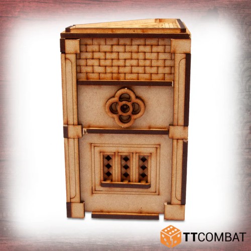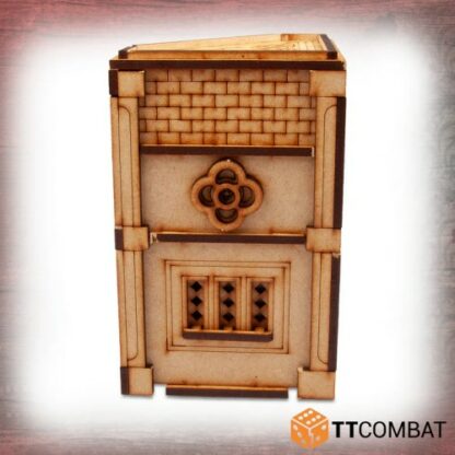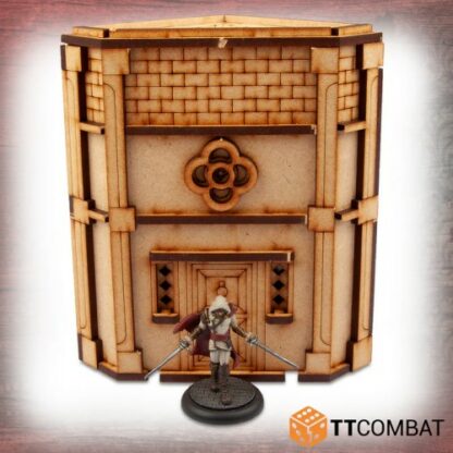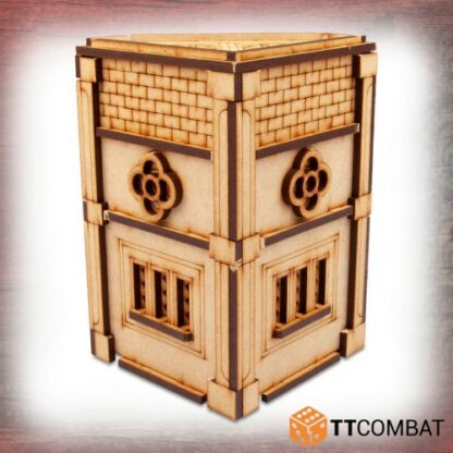 Ce kit est fabriqué à partir de MDF de 3 mm et a été conçu pour Carnevale, utilisant plusieurs étages pour grimper et sauter, et des toits à angles faciles afin que les miniatures ne tombent pas lorsqu’elles traversent l’horizon vénitien. C’est un excellent décor à utiliser avec d’autres jeux 28-32 mm.