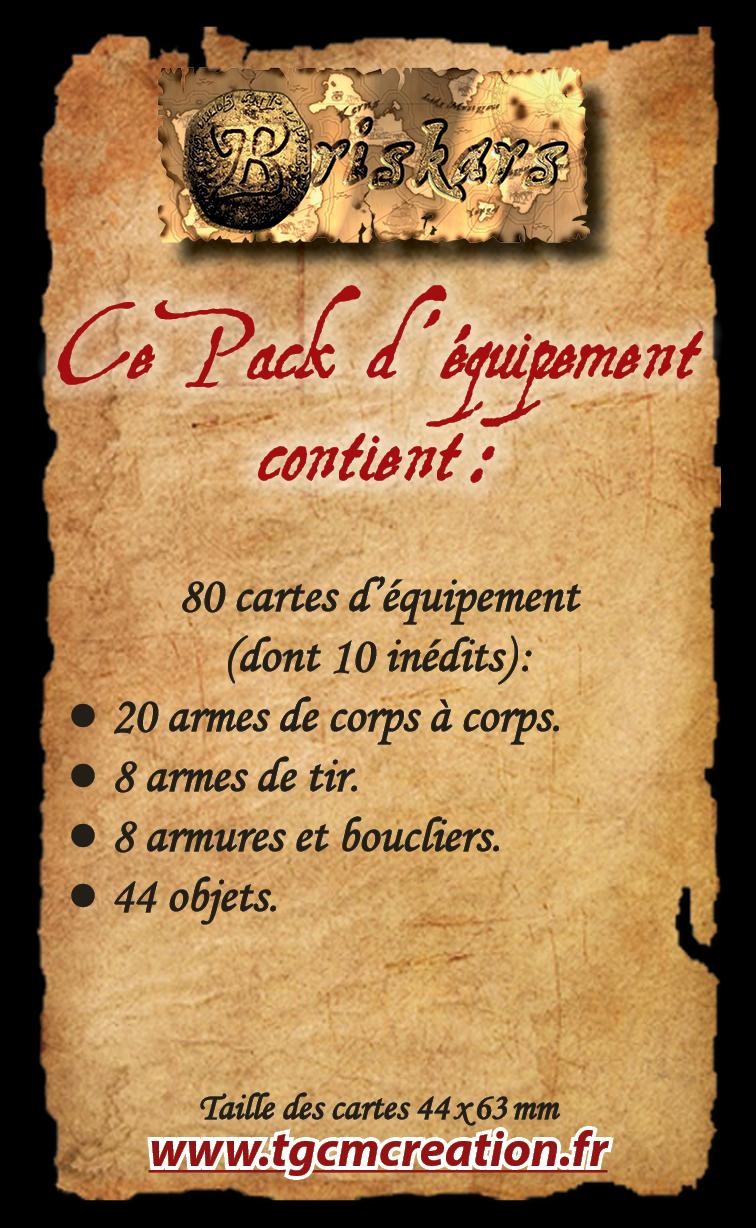 Pack de cartes d’équipements pour le jeu BRISKARS (comprend 80 cartes de 44x63mm, dont 10 inédits).