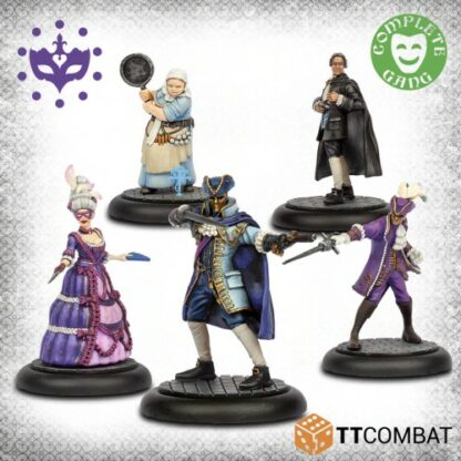 Cette boîte est un démarreur parfait pour un gang de patriciens. Le Noble vénitien est l’un des combattants les plus qualifiés de Venise, soutenu par deux Barnabotti avec des pistolets en option et deux membres du personnel de maison. Les Patriciens sont un petit gang d’élite, qui compte sur ses héros et son chef pour infliger des dégâts, tandis que d’autres fournissent de précieux boucliers humains.