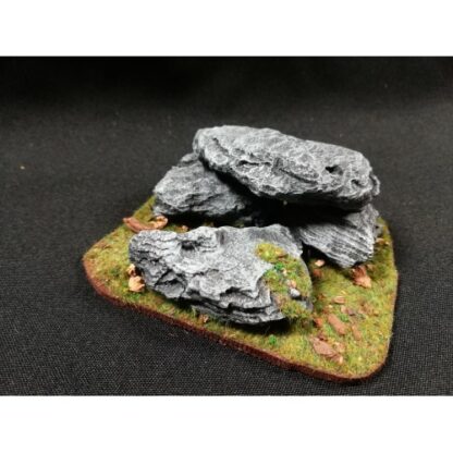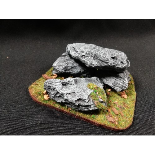 Un Petit rocher sur socle mesurant environ de de 7 à 12cm de long 5 à 7 cm de large et 4 à 10 cm de haut.
