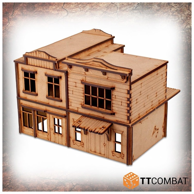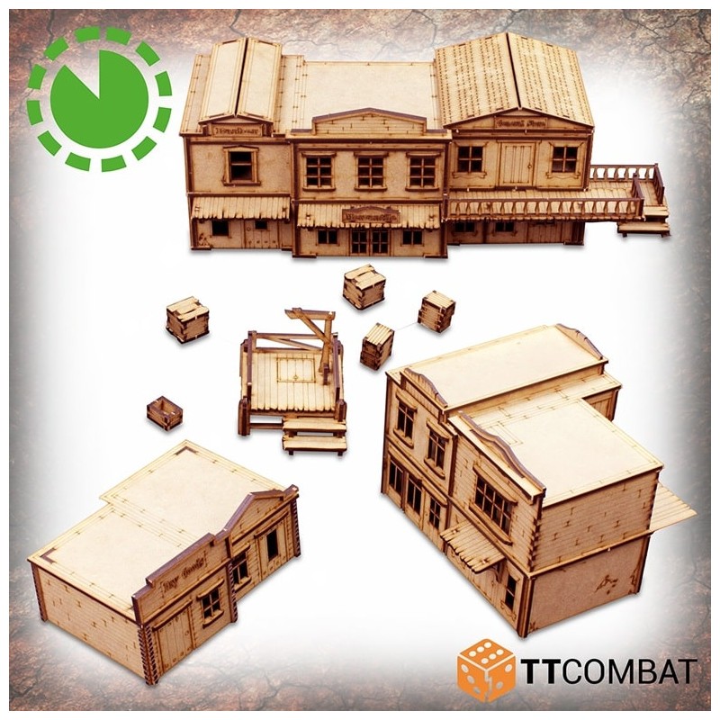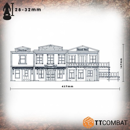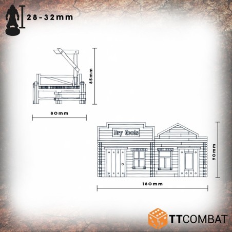 La rue principale Pitchstone est fabriquée en MDF de 3 mm. C’est un excellent kit de décor à utiliser dans les jeux d’escarmouche du Far West, et il fonctionnera parfaitement avec les jeux et les figurines de 28 à 32 mm.